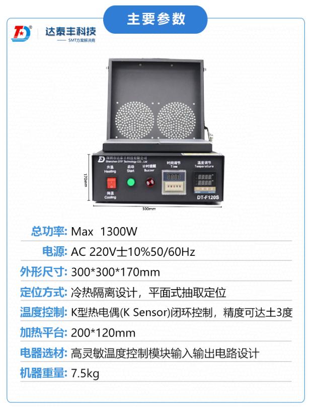 2014年经公司测试使用,更改设计,面板上把散气孔改为可装散热风机的散热吸所孔。改型:DT-F120S